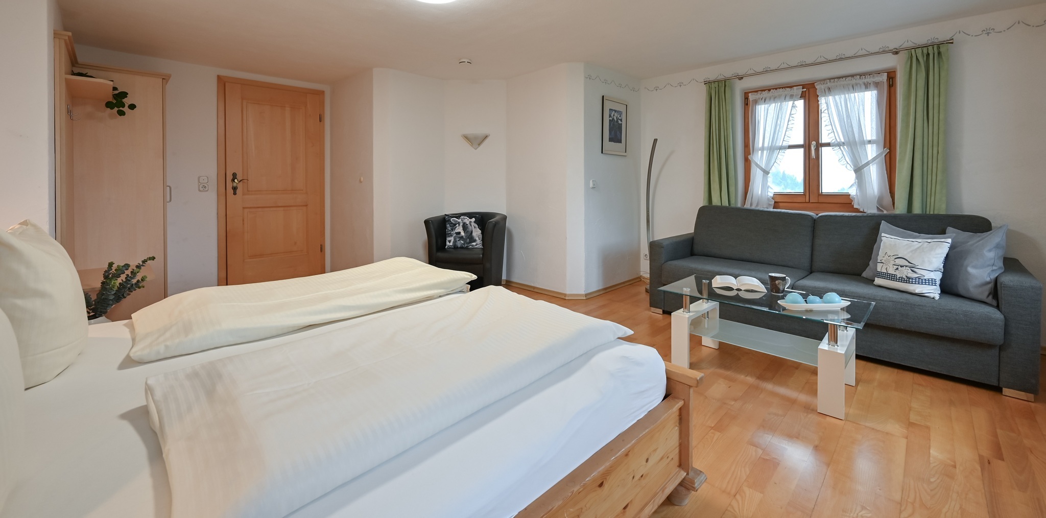 Sehr gemütliche Ferienwohnung mit liebevoll restaurierten Bauernmöbeln. Grosses Wohnschlafzimmer mit Doppelbett, SAT - TV , Sitzcouch. Komplett ausgestattete Küche mit Essecke. Modernes Bad mit WC/ Dusche und Fussbodenheizung.