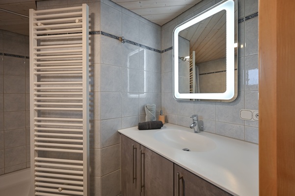Föhn, Handtuchtrockner, WC und Dusche, Waschbecken