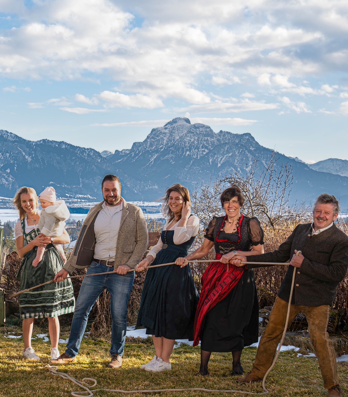 Für Skibegeisterte sind die Pisten im Winter nur wenige Kilometer entfernt. Vielleicht möchtet Ihr auch mal das Nachtskifahren am Tegelberg versuchen? Bei passender Schneelage präpariert der Bauer Franz eine rasante Rodelabfahrt, die direkt am Hof beginnt. Das ist ein absolutes Winterhighlight.